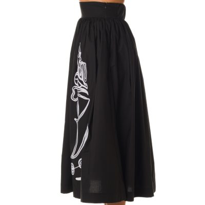 BLACK A-LINE SKIRT WITH EMBROIDERY