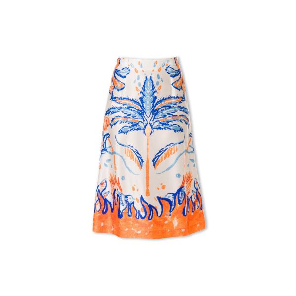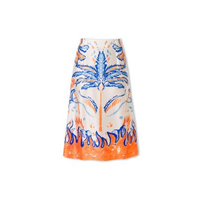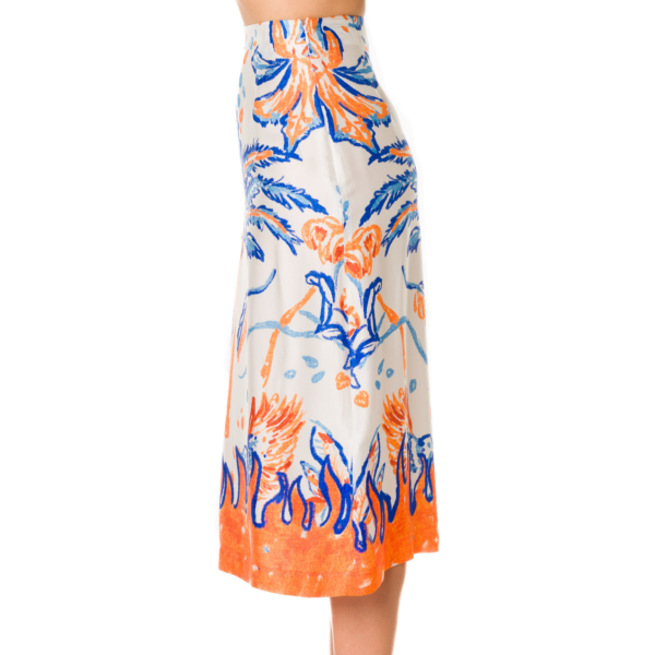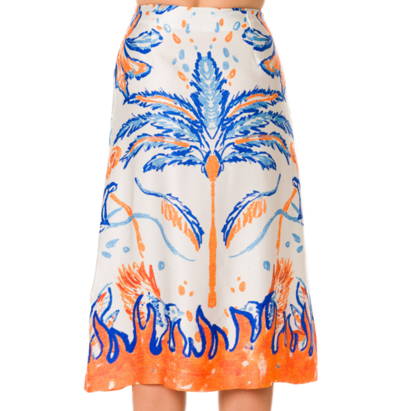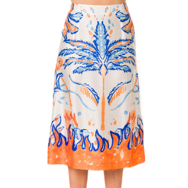 BLUE AND ORANGE PRINTED MIDI SKIRT