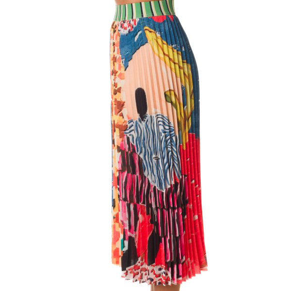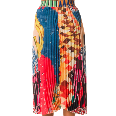PLEATED PRINT MIDI SKIRT