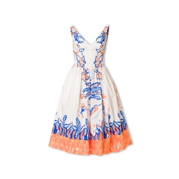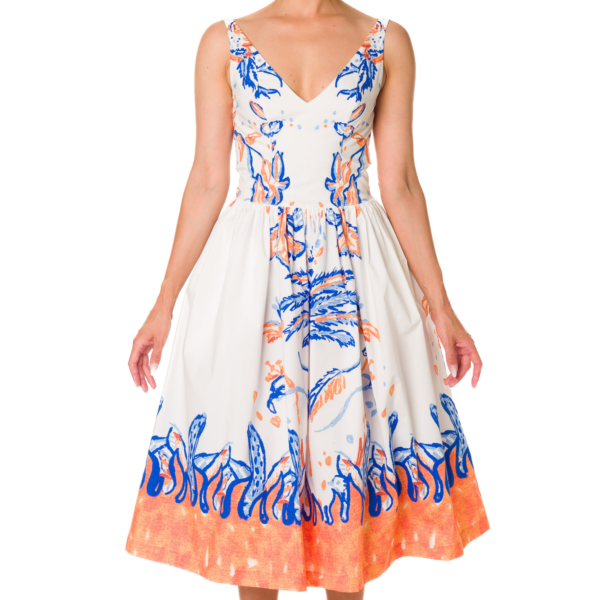 PRINTED V-NECK SLEEVELESS MIDI DRESS